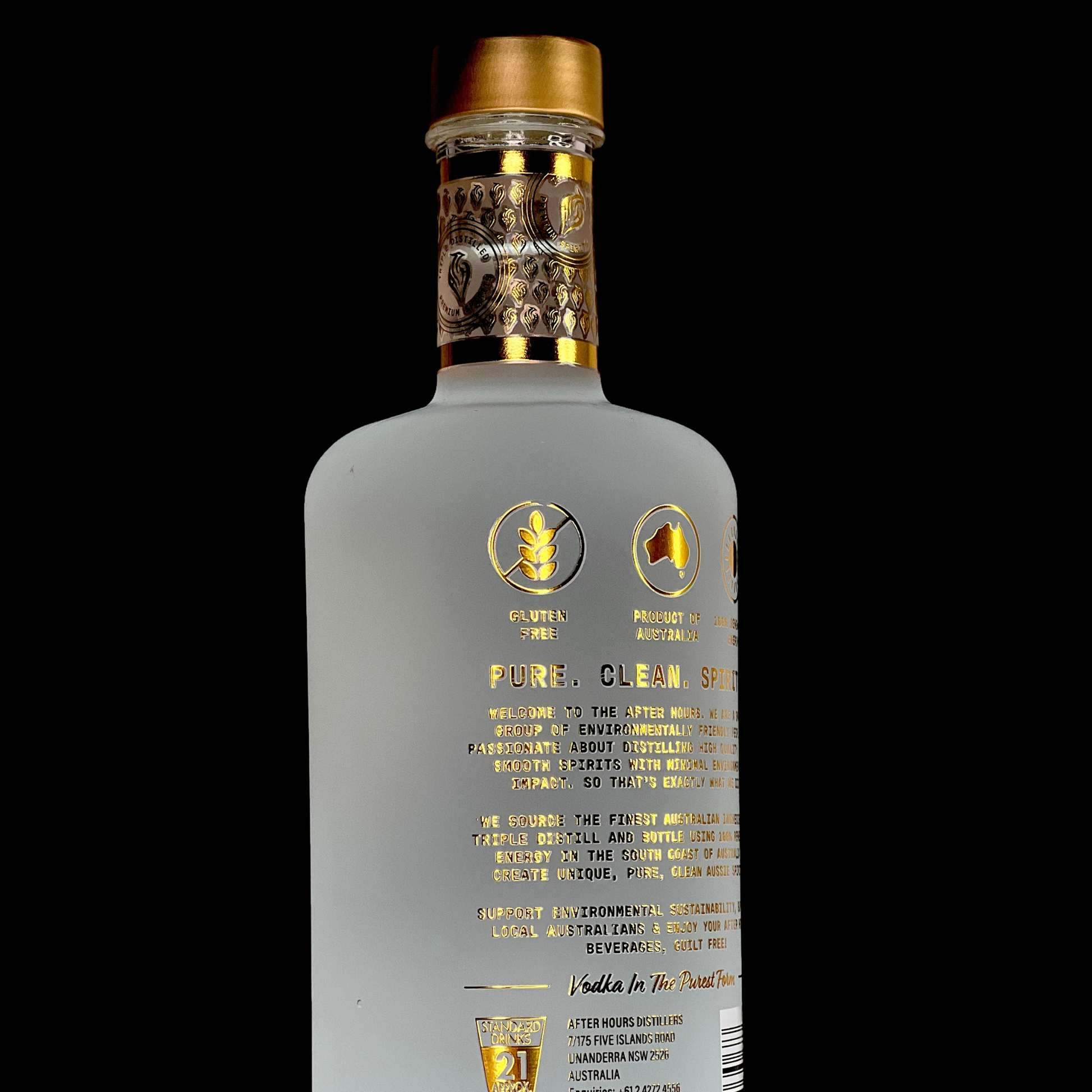 Infused with a symphony of handpicked native botanicals, our Vodka boasts an unmatched purity and clarity that's as clear as the Australian sky. It’s more than an indulgence; it's an encounter with the essence of premium craftsmanship. It’s not just a beautiful design that makes our Vodka stand out, but our commitment to unparalleled quality and sophistication. Be a part of the extraordinary; elevate your After Hours indulgences with our Ultra-Premium Vodka. Because you deserve nothing less than the finest Australia has to offer. Cheers to the extraordinary, cheers to you.